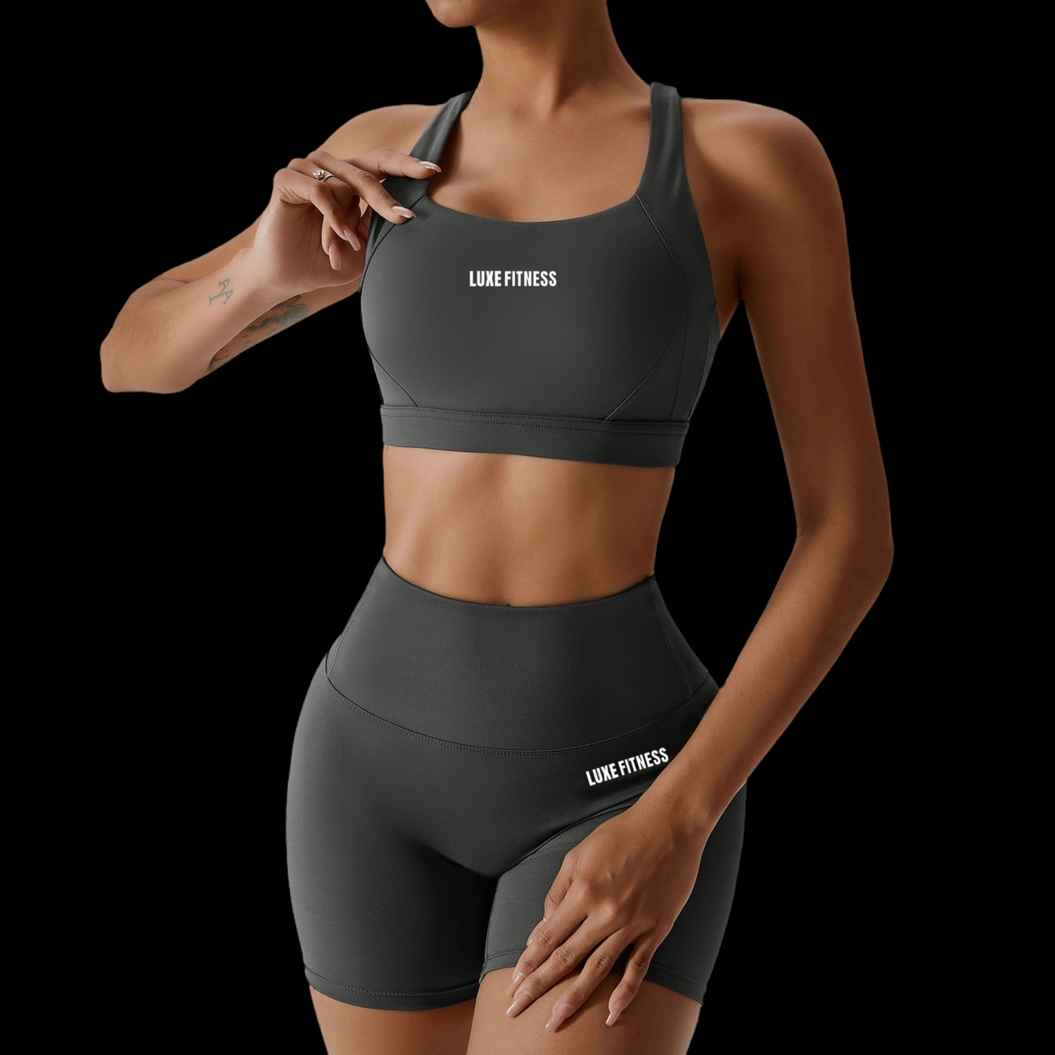 Feel confident and stylish in our LUXE LOVE YOU SET. This matching shorts and bra set is designed for a slim fit, making it the perfect gym attire. Experience comfort and cuteness while you work out in this set.