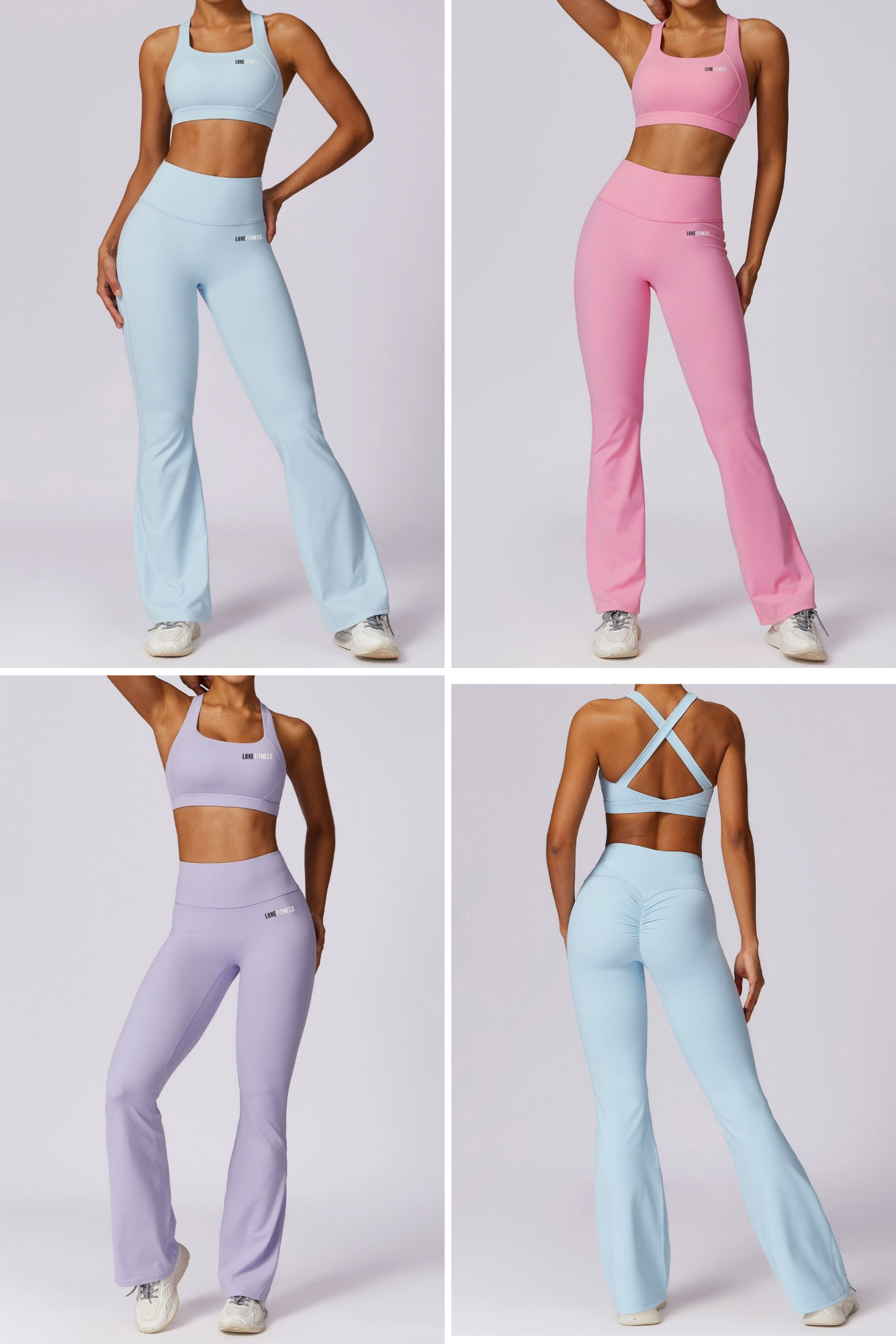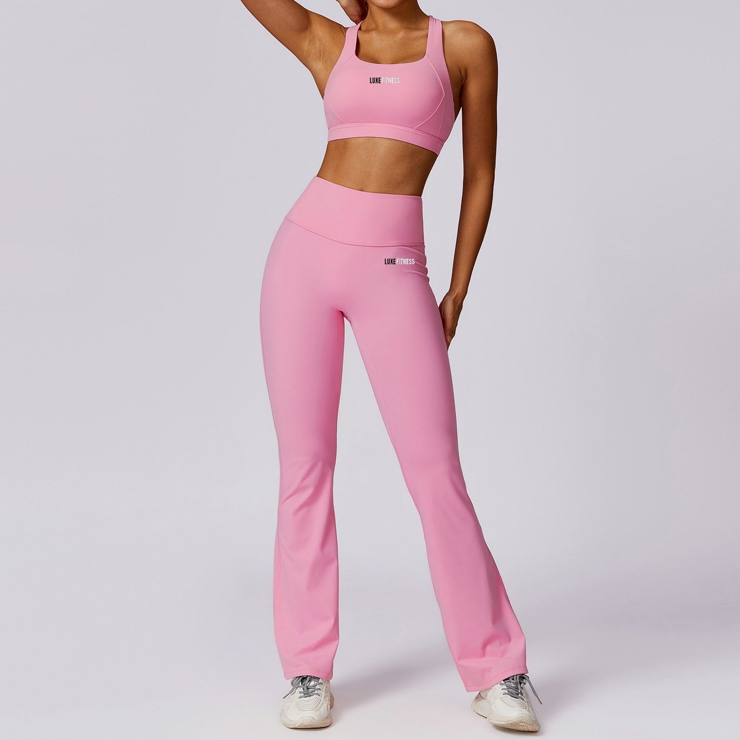 Indulge in our LUXE SCULPT FLARE SET, featuring a flattering square neck design, padded bra, and cross back detail for a chic and supportive look. Made from a sculpting fabric, this 2-piece set offers a second skin feel while keeping you cool and dry with its moisture-wicking capabilities. Perfect for all your fitness needs, its compressive waistband and squat-proof design will keep you feeling secure and confident. Made with 78% Nylon and 22% Spandex. Style together or separately for endless outfit options!